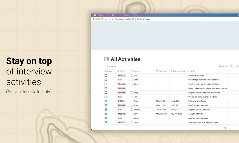 My name is Taras! Over the past 2 years, I have been working and consulting a number of startups where a big part of my role was to plan and conduct customer interviews. The goal of the interviews was simple - to uncover  customer pain points and see whether the problem the startup was solving was big and important enough.
