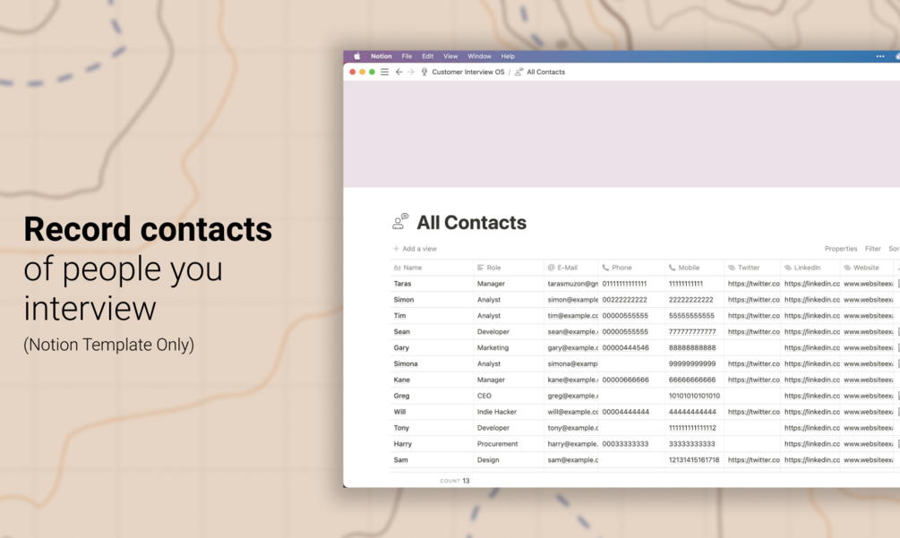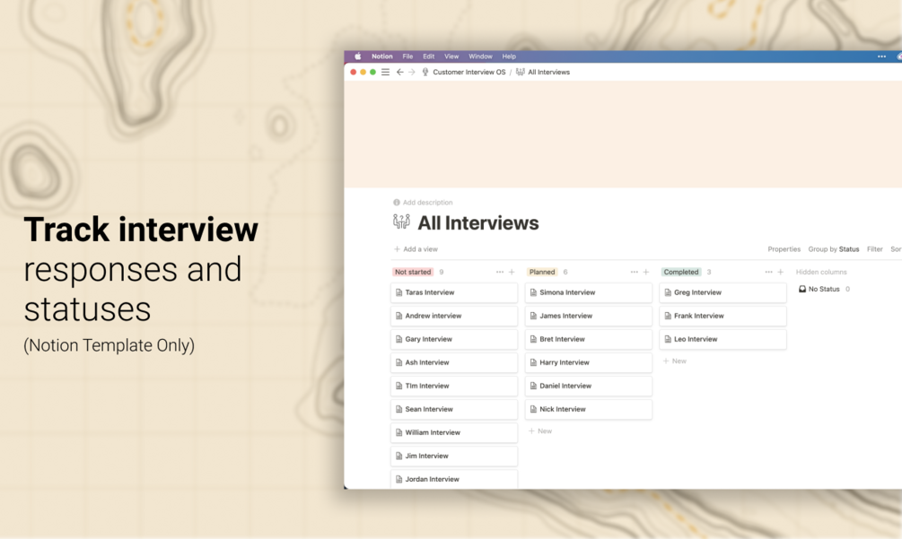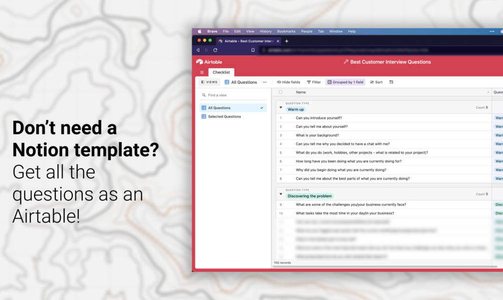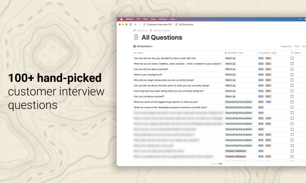 is a structured way of planning for and executing customer interviews with a list of handpicked and battle-tested questions for creators, hackers and developers building products and services. It will help you: